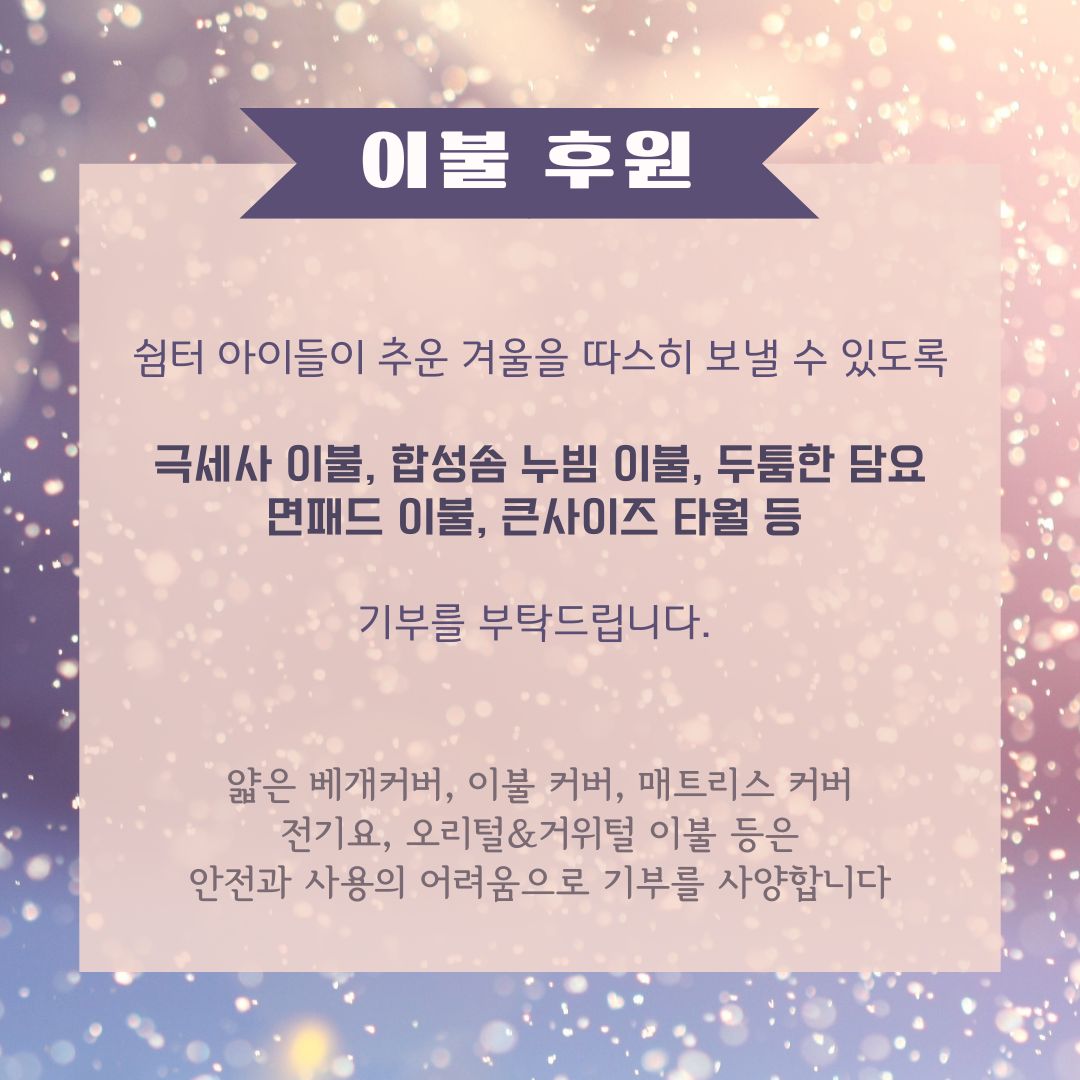 ❄️ 겨울철에는 이불 및 폐기물 처리 비용이 많이 듭니다. 폐기 봉투값 천 원의 후원도 이 겨울 쉼터에 큰 도움이 됩니다🙇🏻♀️