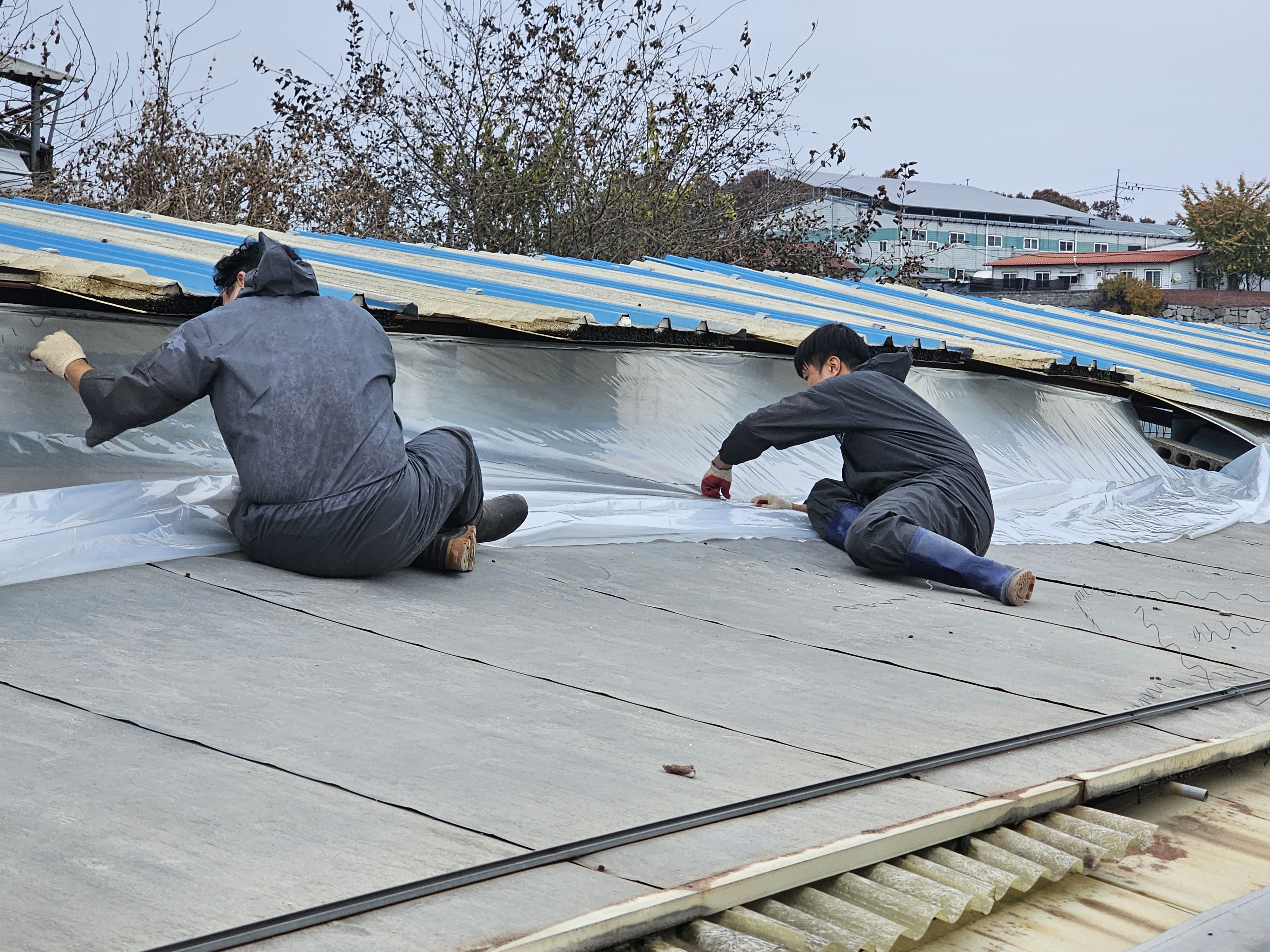 평소보다 빠르게 쉼터를 찾아주신 해온 봉사팀. 외부견사 비닐 작업을 마무리해주셨습니다👍