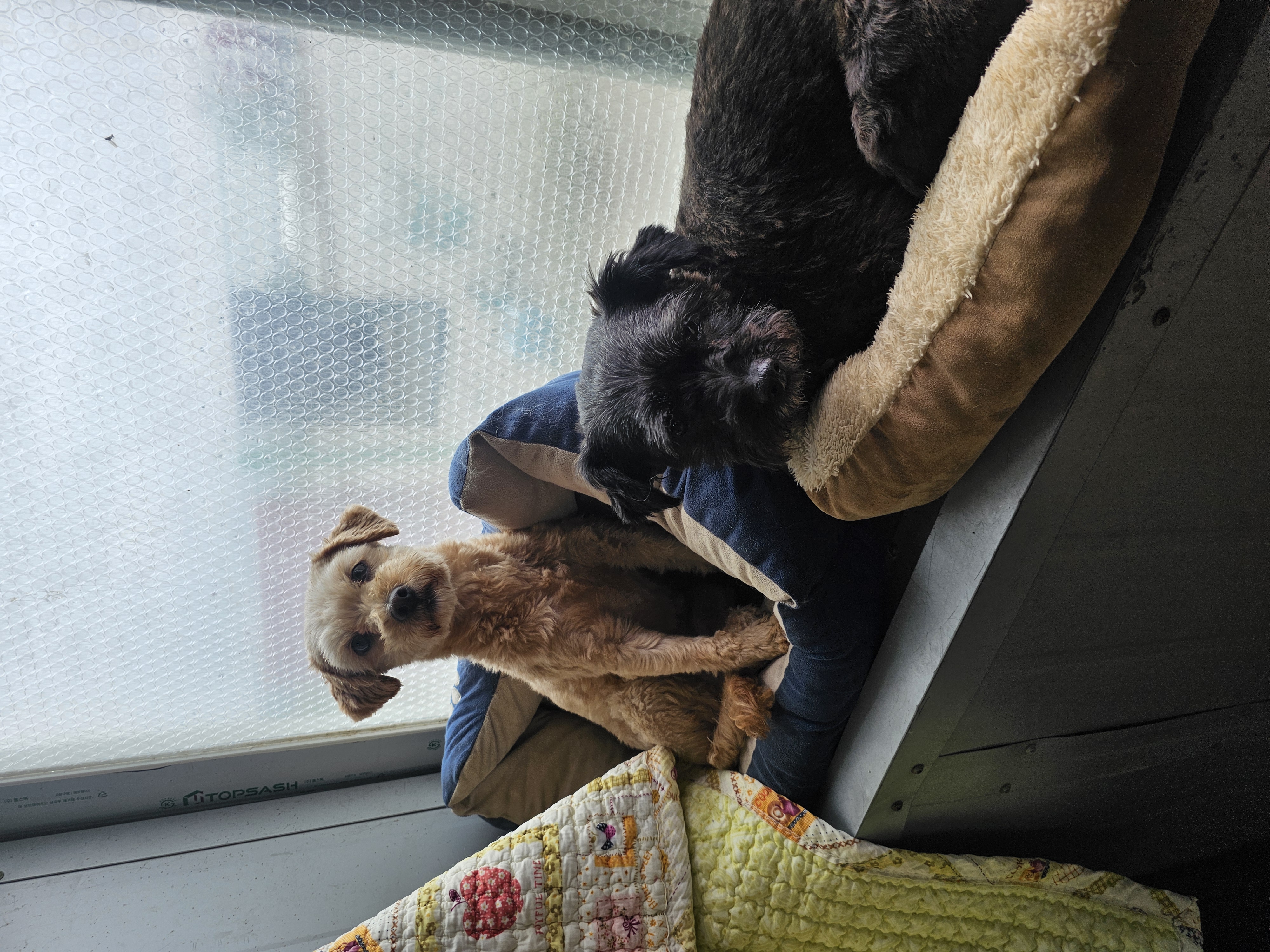 사람에게 살 붙이고 잠들길 좋아하는 무릎 강아지.