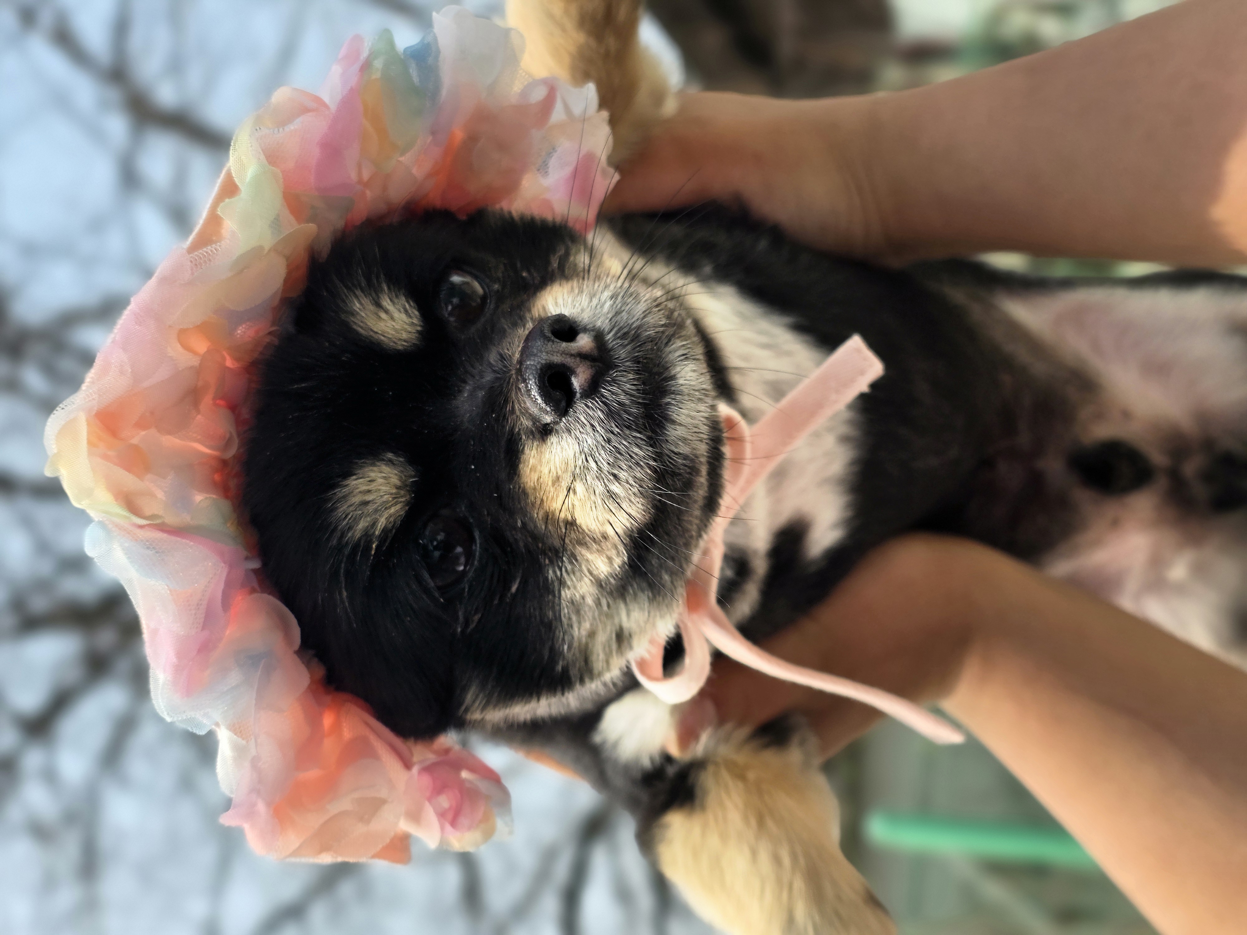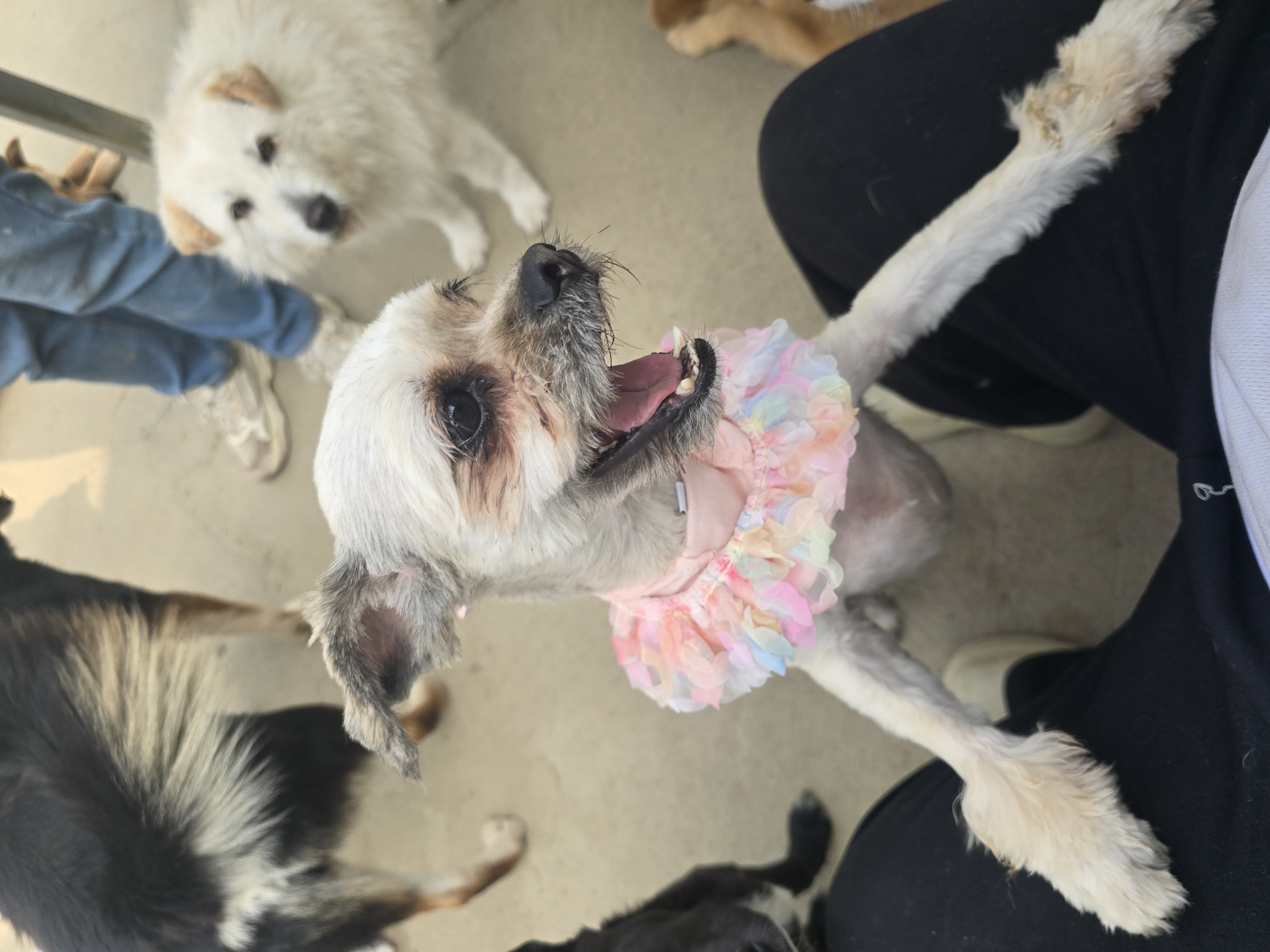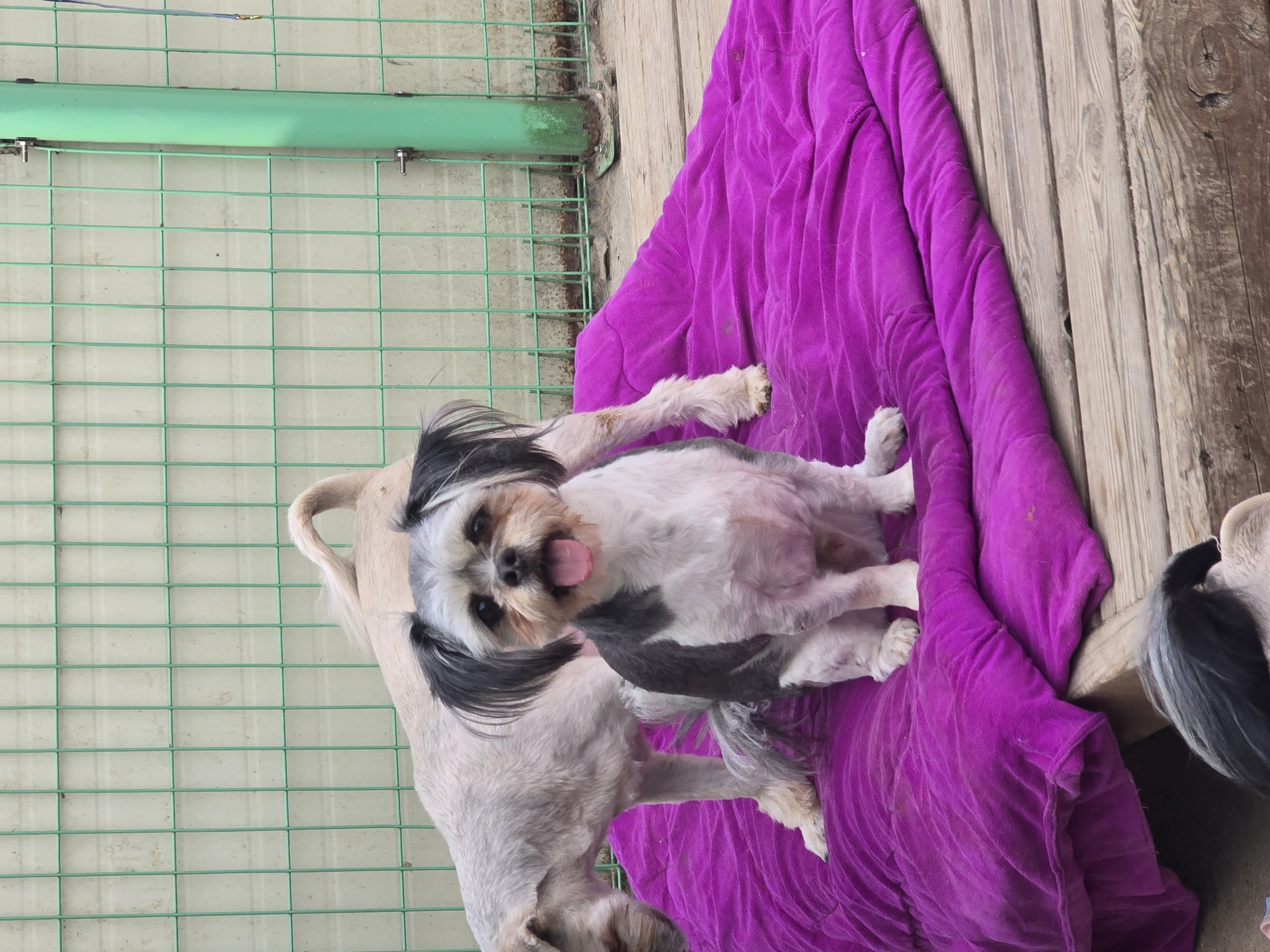 쉼터에 도착한 기부품 중에 봄빛이 물든 옷이 있어 시츄&치와와 가족에게 입혀보았어요.