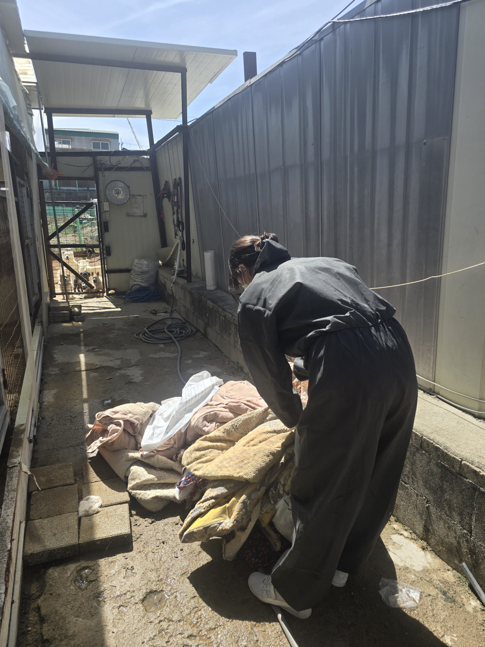 더러워진 이불도 치워주시고 견사 청소, 밥 챙기기에 아이들 이뻐해주기까지.