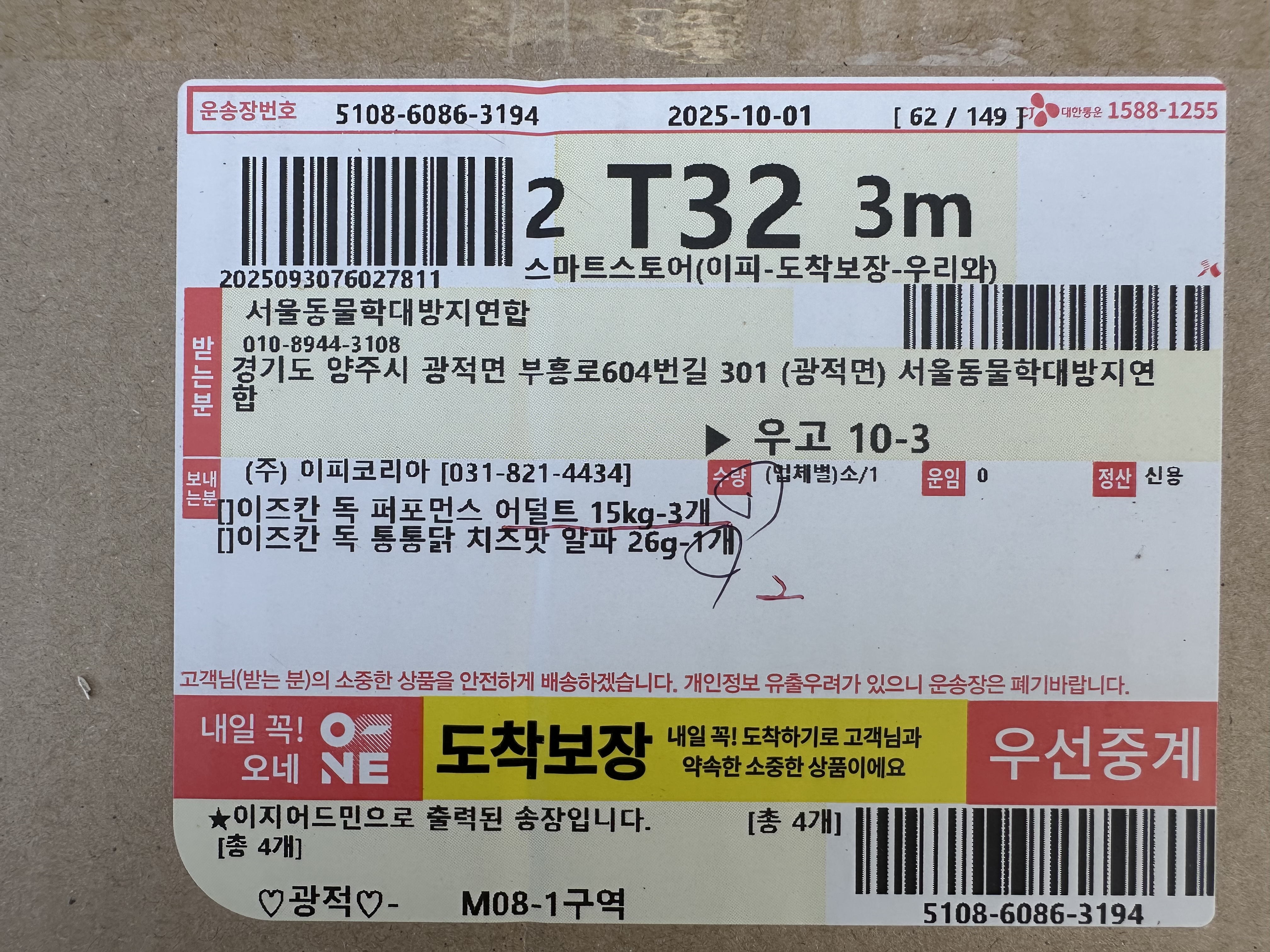 쉼터 아이들을 위한 사료 후원에 진심으로 감사드립니다.
