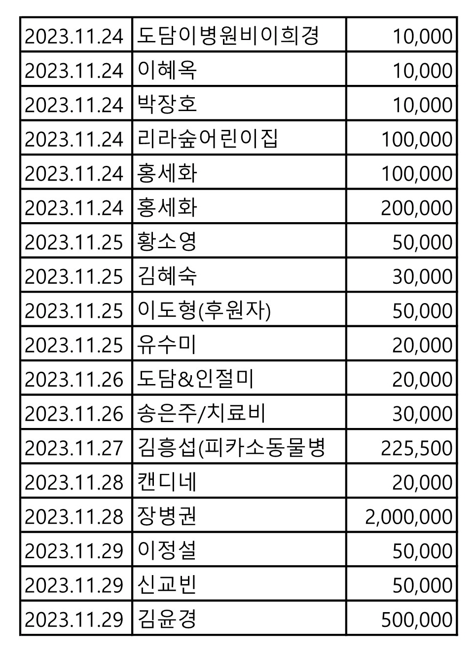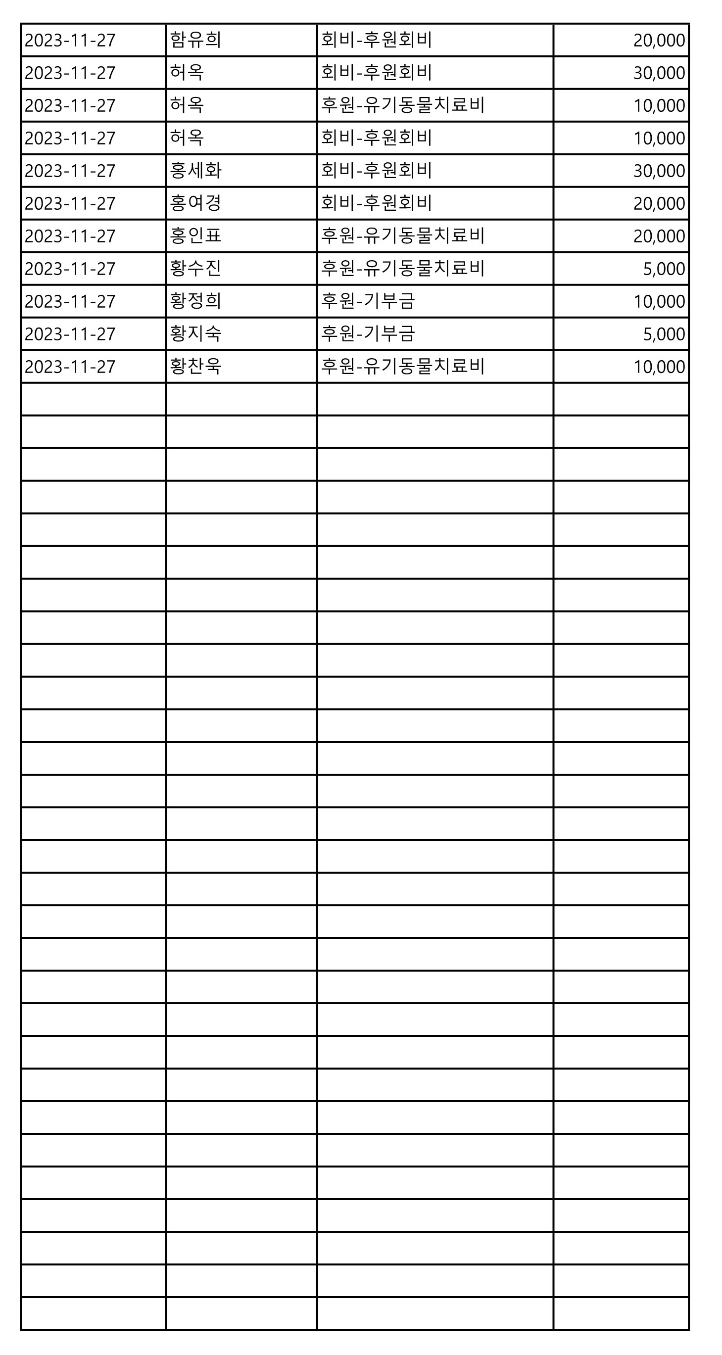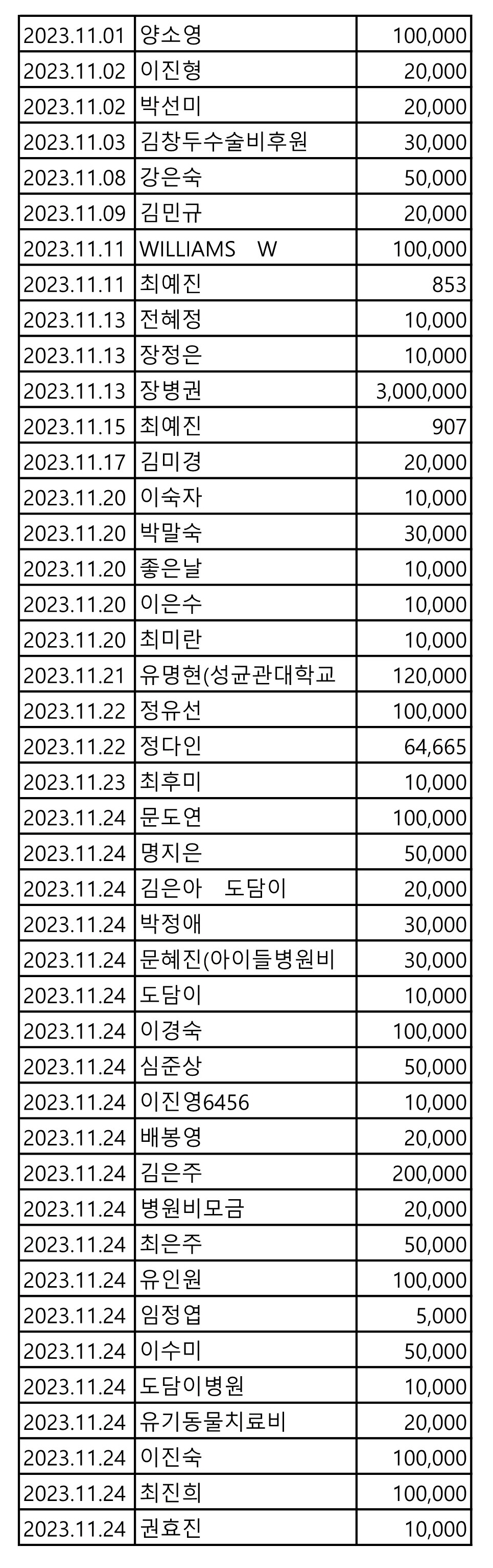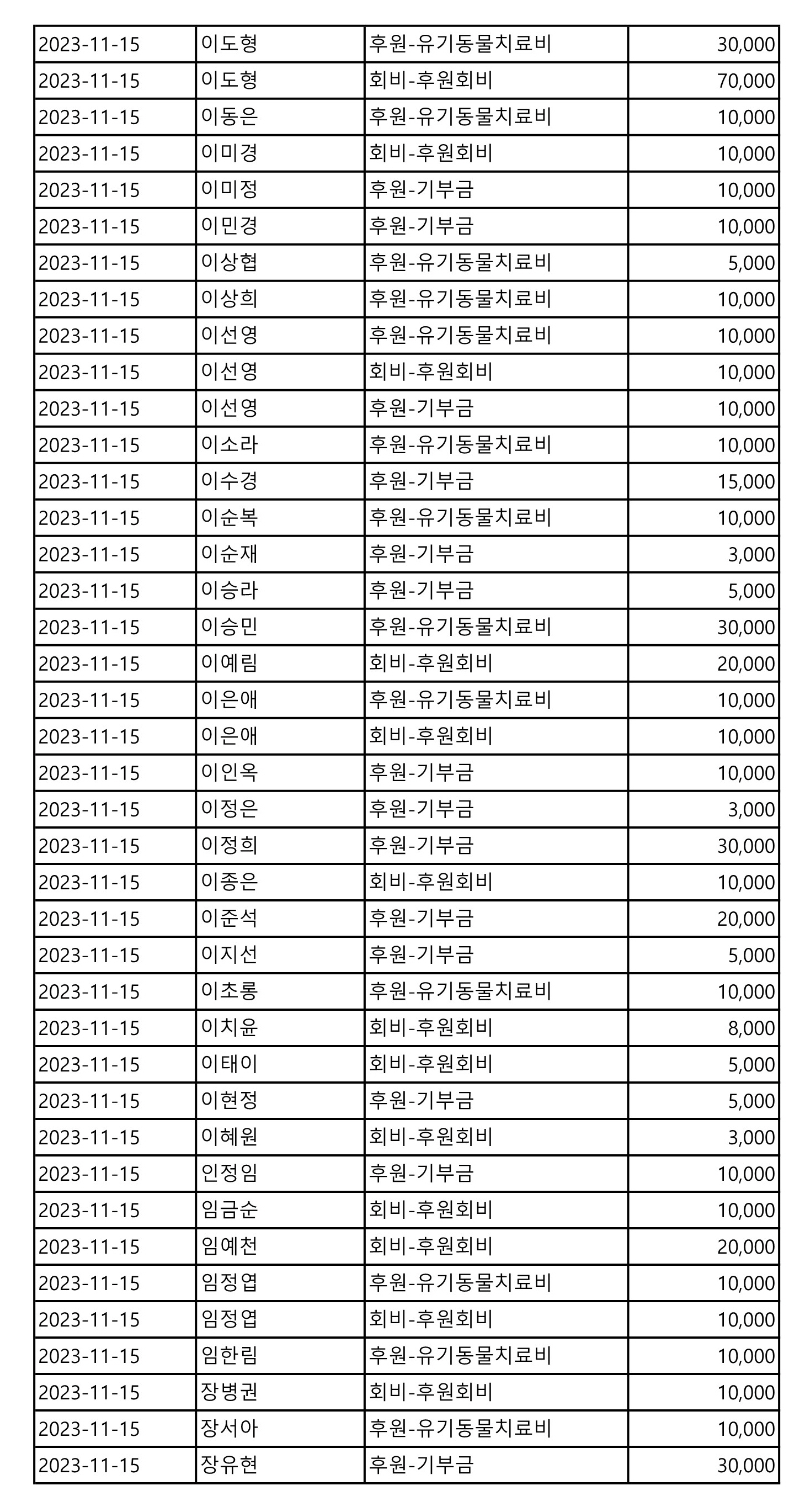 2023년 11월 CMS, 신용카드, 계좌입금을 이용한 정기, 일시후원 리스트