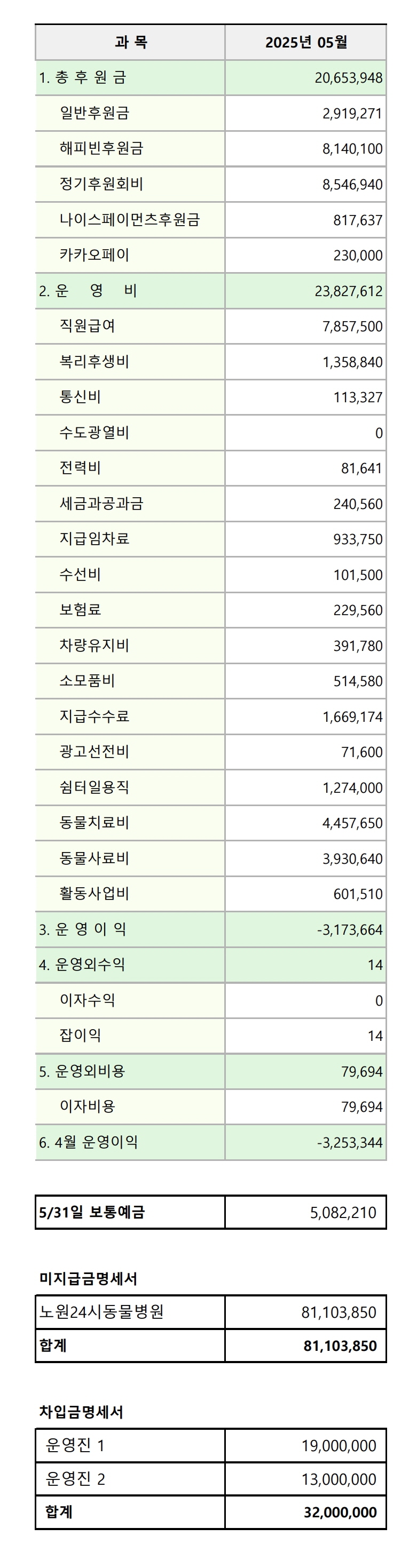 2025년 05월 후원 및 지출 내역