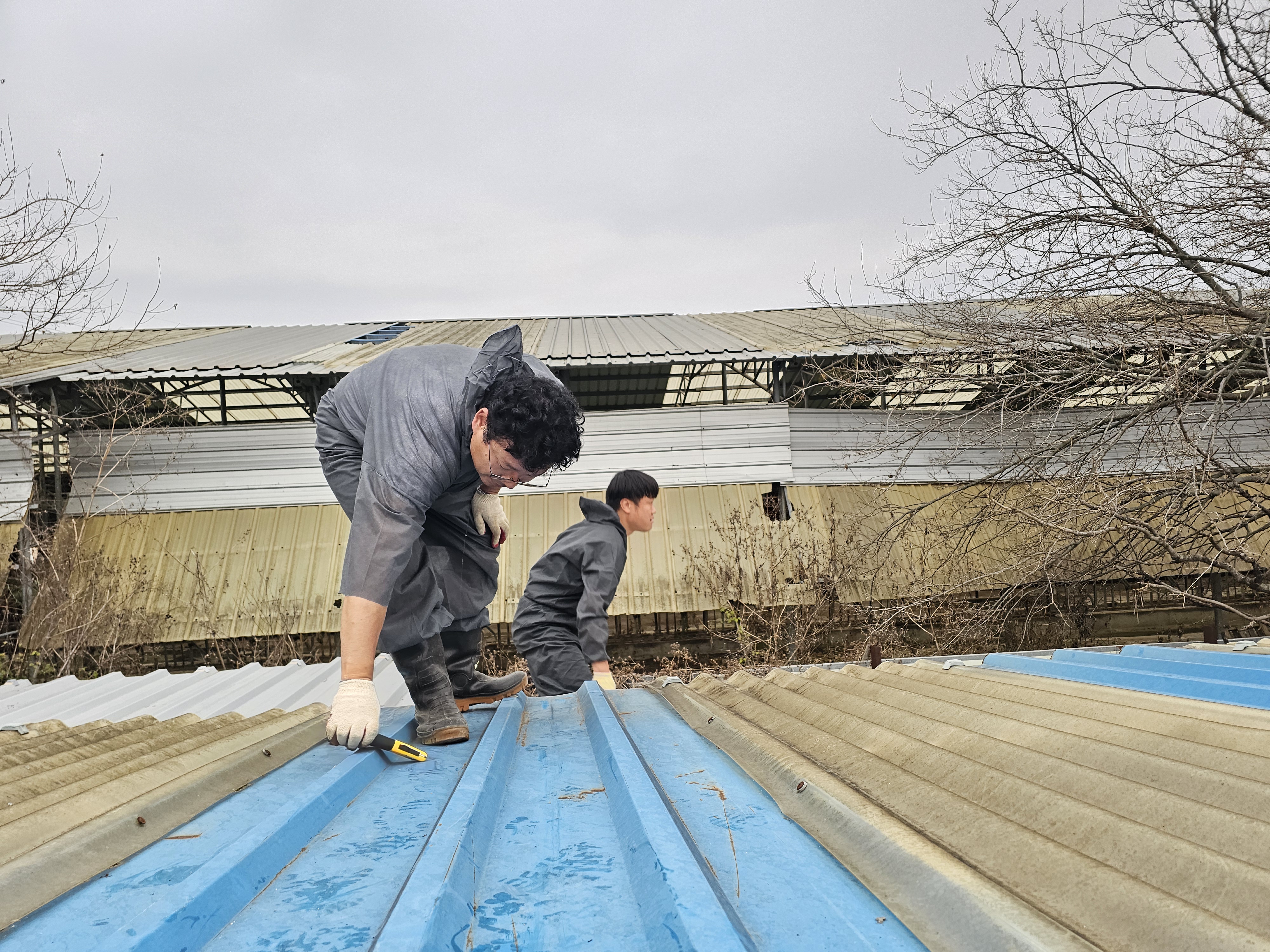 평소보다 빠르게 쉼터를 찾아주신 해온 봉사팀. 외부견사 비닐 작업을 마무리해주셨습니다👍
