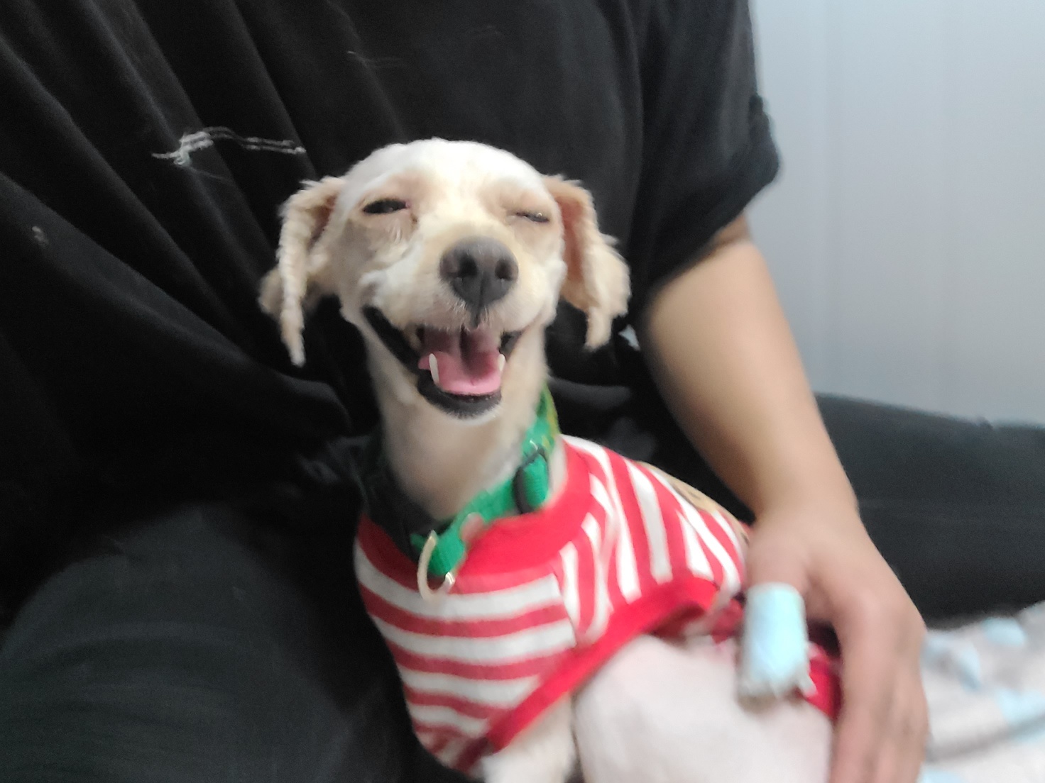 사람에게 살 붙이고 잠들길 좋아하는 무릎 강아지.